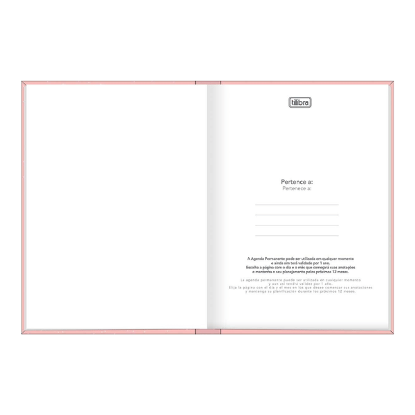Uma agenda permanente não possui os dias da semana impressos. Isso torna o produto flexível e reutilizável, ideal para anotações e planejamento contínuo sem a limitação de um ano específico.