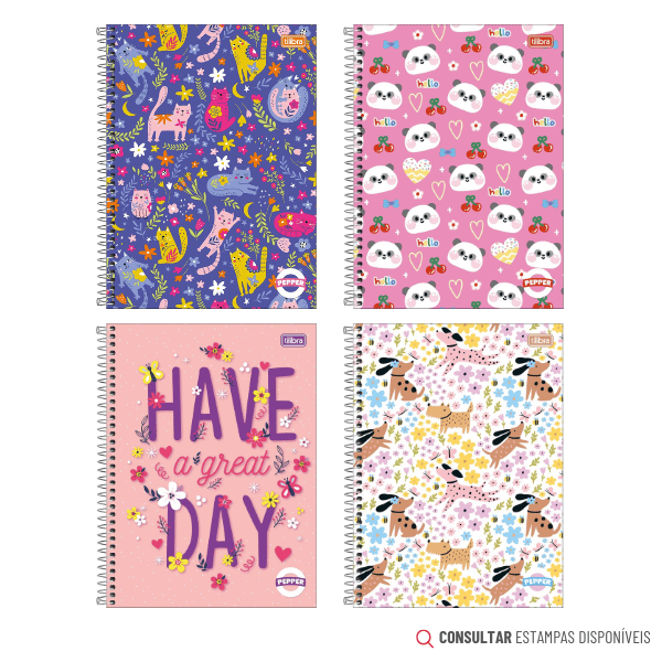 Caderno Universitário 20 Matérias Capa Dura Pepper Feminino 320 Folhas