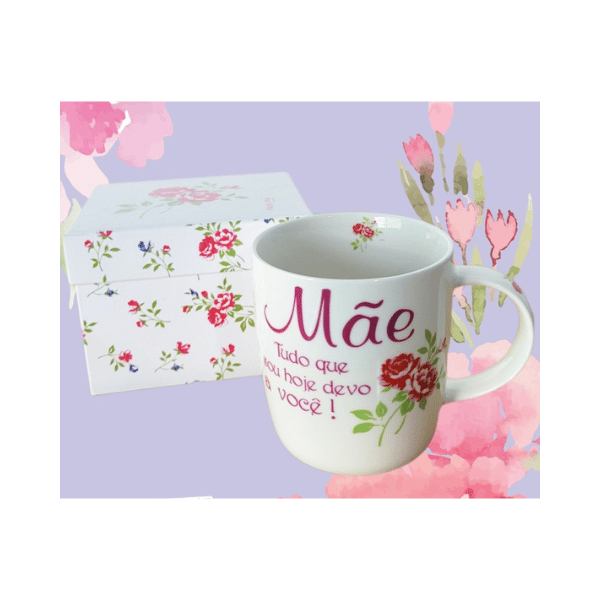Caneca Porcelana Mãe Tudo Que Sou Floral + Gift Box