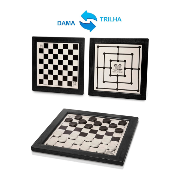 Com o nosso conjunto 2 em 1, você tem dois jogos clássicos em um só tabuleiro: Dama e Trilha! Ideal para todas as idades, ele é perfeito para estimular o raciocínio lógico e garantir momentos de diversão com amigos e família.