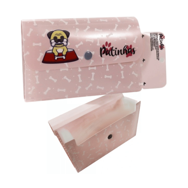 Pasta Sanfonada A6 com 12 Divisórias Patinhas Rosa Plascony