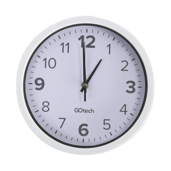 Relógio de parede em plástico modelo redondo, com personalização, diâmetro de 24cm. Aplicação: Produto funcional que pode ser usado em qualquer ambiente. Diferenciais: Impressão em 4 cores. N.P