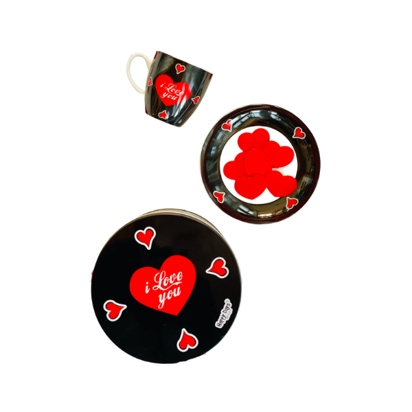 Xícara Porcelana Cafezinho + Pires I Love You + Lata